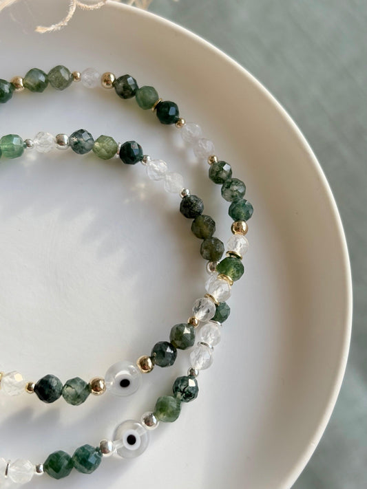 Calm + Centred: Moss Agate & Clear Quartz Bracelet