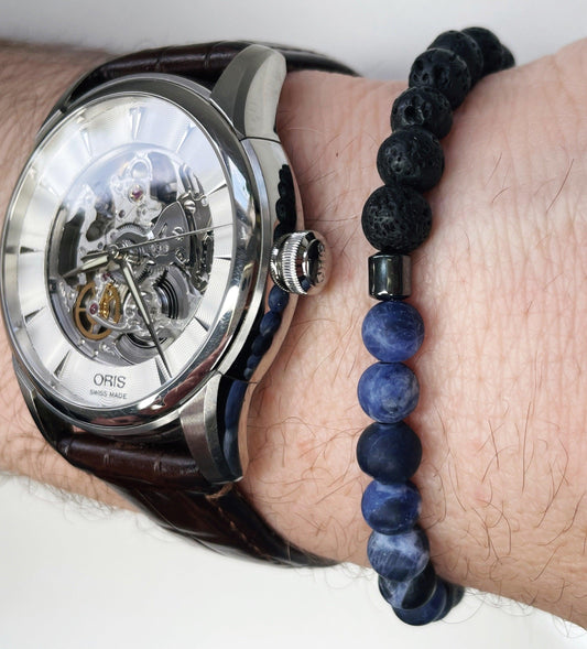 Balance & Self-Esteem - Matt Blue Sodalite & Lava Stone Bracelet