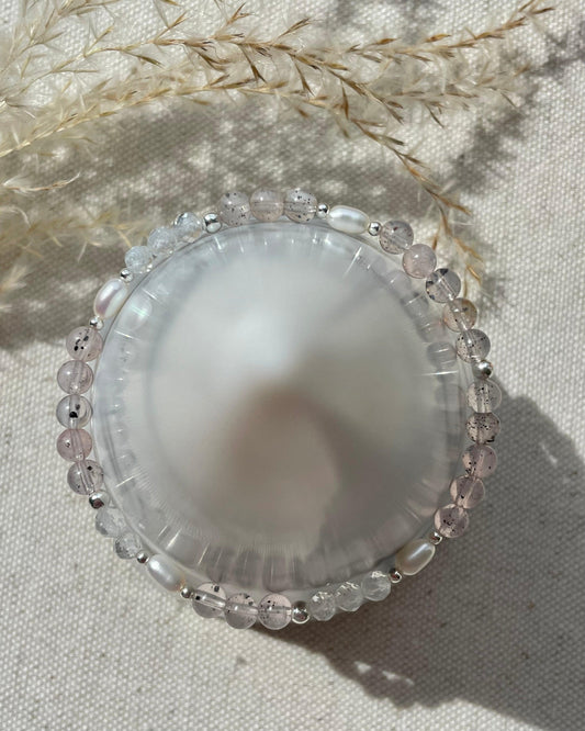 Strength + Enlightenment | Limited Edition: Rare Black Hematite In Rose Quartz & Fresh Water Pearls with White Topaz