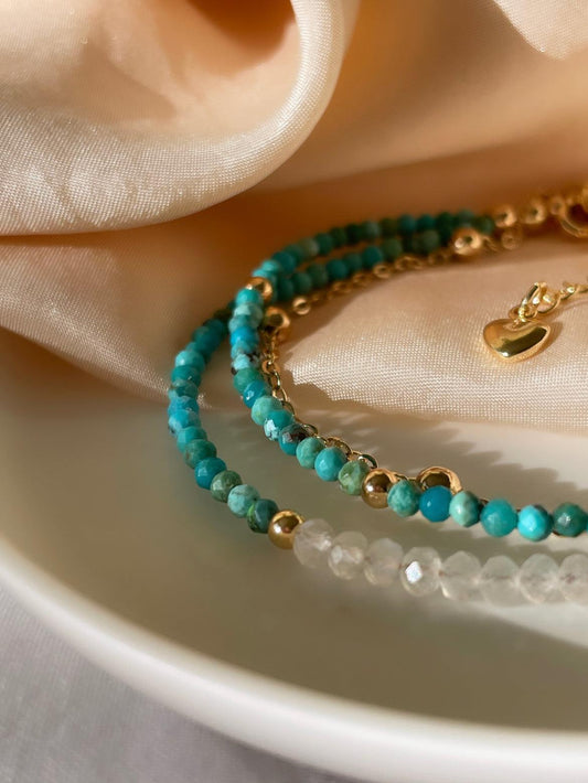 Turquoise & Moonstone Clasped Gold Filled Bracelet