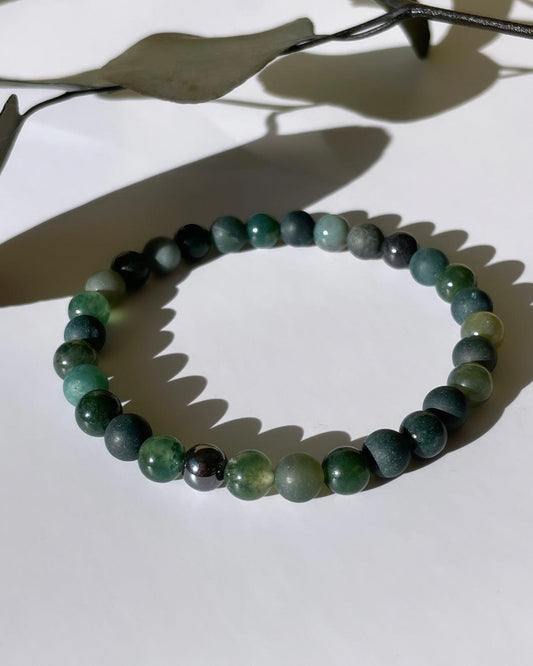 Grounding and Positivity - Matt Moss Agate Healing Crystal Bracelet