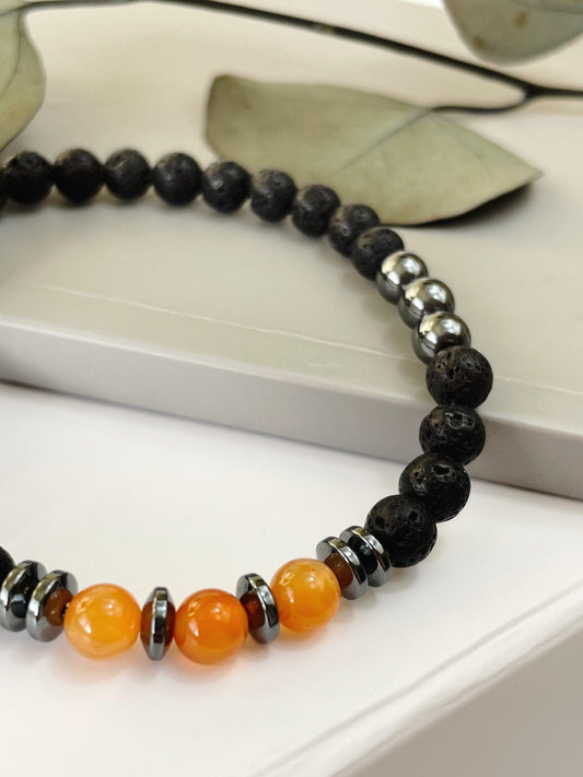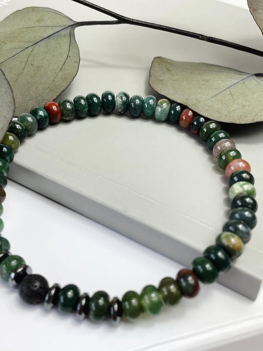Courage & Stability - Indian Agate, Hematite & Lava Bead Bracelet