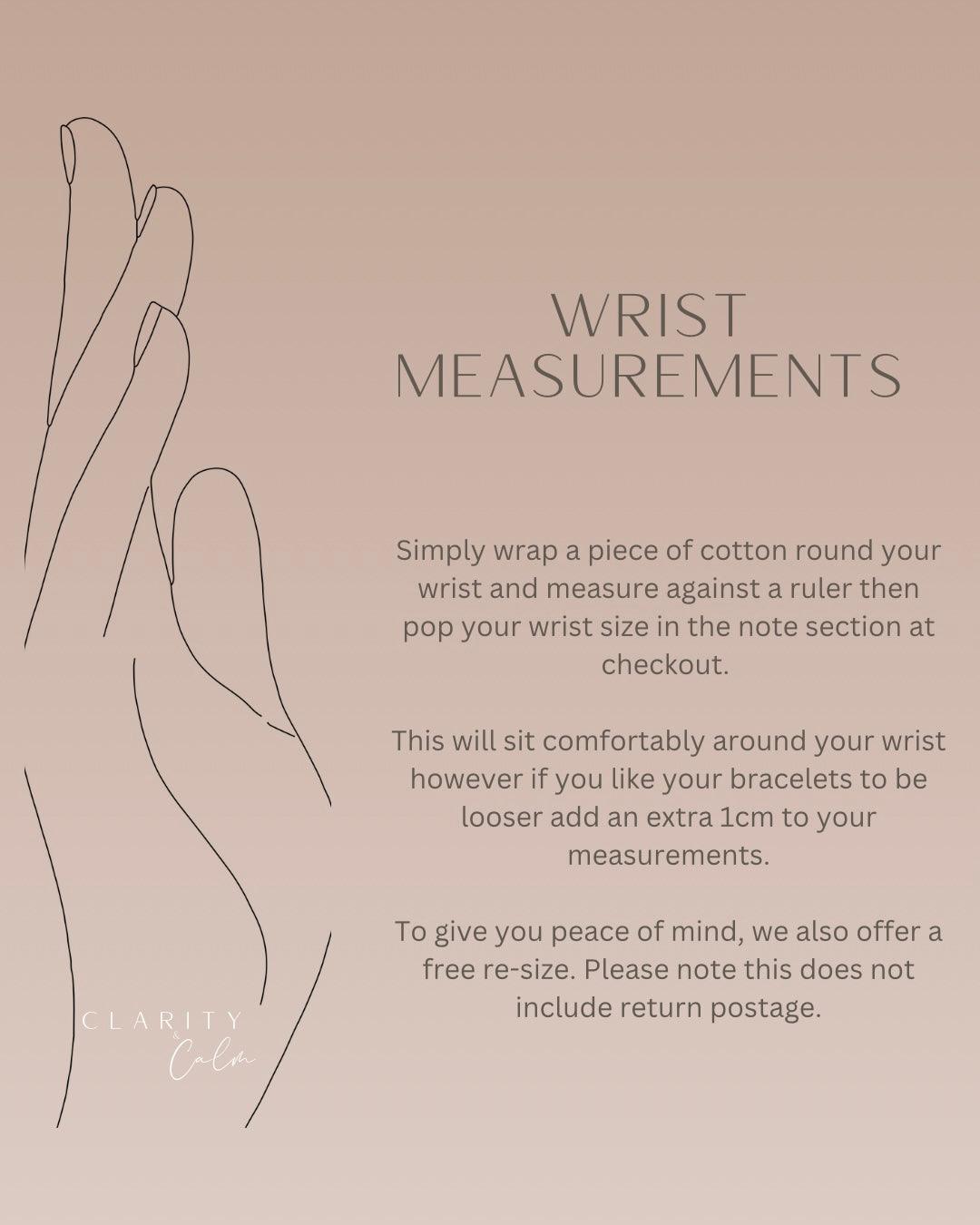 Our stretch bracelets are made to the average wrist size of 17.5cm. We also offer made-to-measure at no extra charge. Simply follow our measuring guide in the picture included in this listing and pop your wrist size in the note section at checkout.