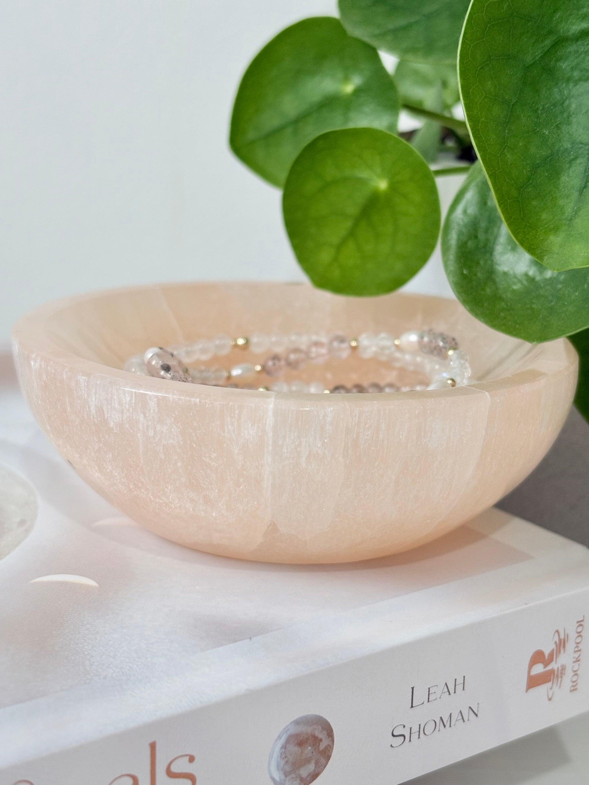 To complete the experience, you’ll also receive a beautiful Peach Selenite Charging Bowl - the perfect place to cleanse, recharge, and keep your crystal jewellery glowing with energy.